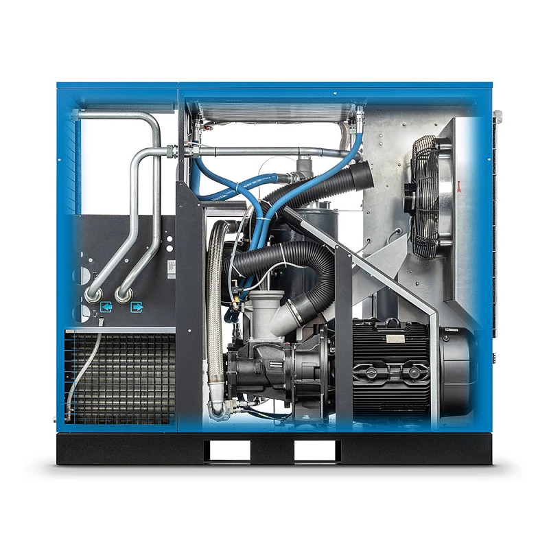 - виброизоляционного, звукопоглощающего корпуса, обеспечивающего самый быстрый и легкий доступ, в своем классе компрессоров, ко всем внутренним частях компрессора для подключения и технического обслуживания;