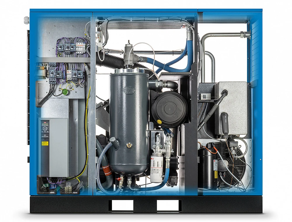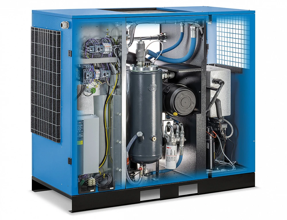 Винтовой компрессор FORMULA.I 37/8 представляет собой готовую к эксплуатации компрессорную станцию, что достигается за счет наличия:
