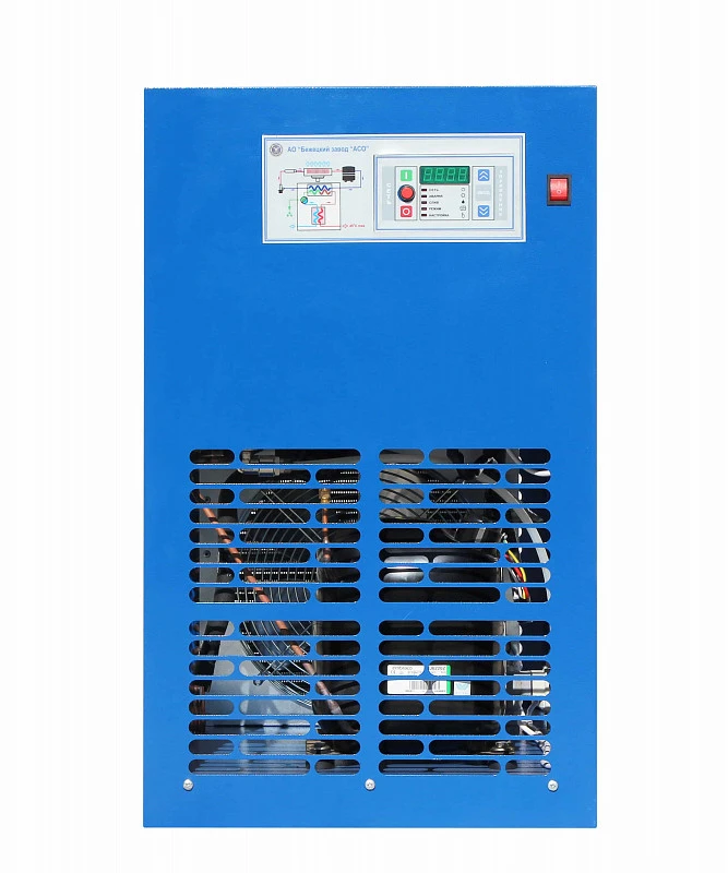 Осушитель снабжен автоматической системой аварийной защиты с возможностью индикации причины аварийного останова. Экстренная остановка и блокировка пуска электродвигателя и компрессора происходит при следующих условиях: